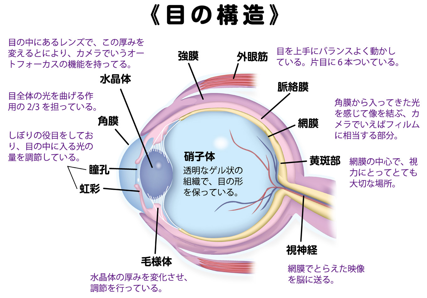 ここでは、近視のメカニズム・視力低下の原因・視力回復について説明させていただきます。